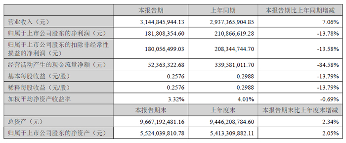 報告期內(nèi),公司實現(xiàn)營業(yè)總收入18.19 億元,比上年同期增長1.15%,整體保持穩(wěn)中向好態(tài)勢;報告期內(nèi)毛利率31.22%,較上年同期提升4.09 個百分點;實現(xiàn)歸屬于上市公司股東的凈利潤1.16 億元,比上年同期增長30.84%;實現(xiàn)歸屬于上市公司股東的扣除非經(jīng)常性損益的凈利潤1.07 億元,比上年同期大幅增長90.64%。這一系列向好數(shù)據(jù),既彰顯了公司盈利能力的長效增長勢能,也印證了降本增效工作的顯著成果,更凸顯出經(jīng)營管理水平的持續(xù)精進。