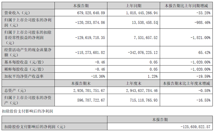 報告期內(nèi),中光學集團實現(xiàn)營業(yè)收入 6.79 億元,較上年同期的 10.18 億元同比下降 33.28%;歸屬于上市公司股東的凈利潤為 - 1.20 億元,較上年同期的 1353.85 萬元大幅下降 988.46%;扣除非經(jīng)常性損益后的凈利潤為 - 1.30 億元,同比降幅達 1821.00%。
