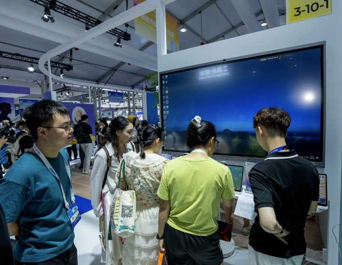 作為教育領(lǐng)域和辦公領(lǐng)域的應(yīng)用代表,視源股份分別展示了希沃AI學(xué)習(xí)機(jī)W3S與W20、希沃臺(tái)式計(jì)算機(jī)榫卯架構(gòu)、65英寸MAXHUB智能會(huì)議平板等多款硬件,并配套AI備課、AI作業(yè)輔導(dǎo)、AI會(huì)議等場(chǎng)景化應(yīng)用,吸引大量專業(yè)觀眾駐足。