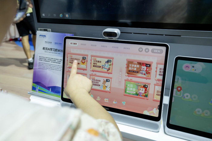 現(xiàn)場(chǎng)一位觀眾觸碰希沃AI學(xué)習(xí)機(jī),提到“幫我推薦恐龍繪本”讀物,學(xué)習(xí)機(jī)會(huì)即可搜索相關(guān)內(nèi)容。工作人員介紹,圍繞3-8歲兒童成長(zhǎng)規(guī)律,學(xué)習(xí)機(jī)推出閱讀培養(yǎng)、思維啟蒙等主題計(jì)劃。家長(zhǎng)設(shè)定目標(biāo)后,學(xué)習(xí)機(jī)會(huì)自動(dòng)生成個(gè)性化路徑,拆解為每日、每周適齡任務(wù)。此外,學(xué)習(xí)機(jī)還有AI學(xué)伴功能,可以實(shí)現(xiàn)智能作業(yè)輔導(dǎo)、繪本精講等功能,成為“寶媽寶爸的帶娃幫手”。