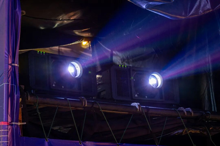 承擔(dān)主會(huì)場(chǎng)西岸穹頂藝術(shù)中心、西岸大劇院和油罐藝術(shù)中心投影的,是松下三芯片DLP™投影機(jī)PT-SRZ34KC。機(jī)身緊湊輕巧的同時(shí)實(shí)現(xiàn)32,000流明高亮度,為投影秀這樣大數(shù)量的投影機(jī)使用和安裝帶來(lái)方便。色彩是光影秀中最直觀的表現(xiàn),能否忠實(shí)地還原影像的色彩直接決定了一場(chǎng)光影秀的優(yōu)劣。PT-SRZ34KC投影機(jī)采用紅藍(lán)雙色激光技術(shù),實(shí)現(xiàn)更鮮艷的紅色和更真實(shí)的藍(lán)色,超廣色域呈現(xiàn)色彩豐富的影像,用生動(dòng)絢麗的色彩為觀眾帶來(lái)更具震撼力的真實(shí)體驗(yàn)。同時(shí),在穹頂藝術(shù)中心這種室內(nèi)場(chǎng)景使用時(shí),其具有的低噪音模式可以將投影機(jī)運(yùn)行時(shí)的噪音降低,有效避免沉浸式投影環(huán)境中可能出現(xiàn)的噪音干擾,有助于打造出完全沉浸的視覺(jué)聽(tīng)覺(jué)體驗(yàn)。是應(yīng)用于戶外Mapping、室內(nèi)投影秀、舞臺(tái)演出等場(chǎng)景的主力機(jī)型。