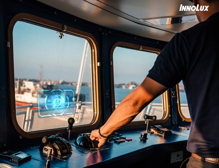 群創(chuàng)首發(fā)「超高亮度MicroLED抬頭顯示器」(HUD),以超高直顯亮度(50,000 nits)與反射虛像亮度(10,000 nits),突破航海與車用環(huán)境中因強(qiáng)光造成的反射與影像模糊,即使在強(qiáng)烈日照、海面或甲板反光下,仍能清晰呈現(xiàn)航道、海況與導(dǎo)航指示,為座艙顯示提供更高可視性,關(guān)鍵信息可直接投射于視線中心或前方視野,減少視線切換并提升操作安全性與應(yīng)用彈性。