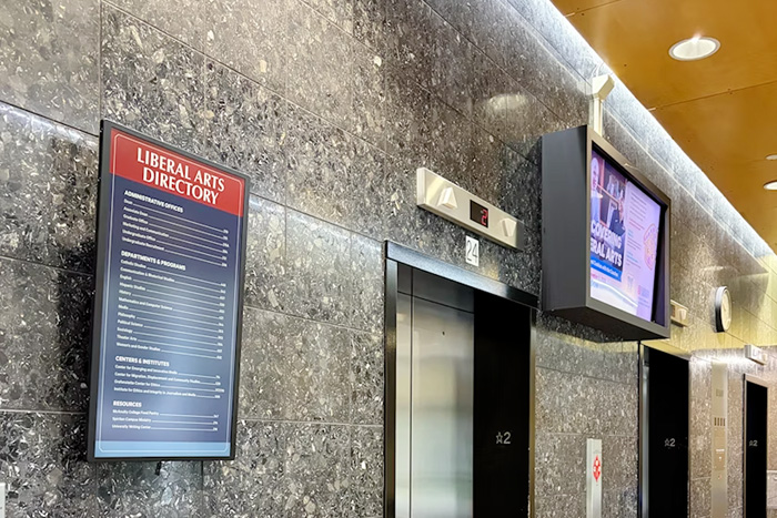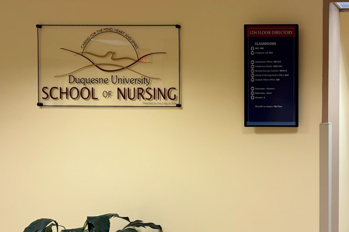 面對這座位于匹茲堡擁有148年歷史的學(xué)府--杜肯大學(xué),這曾是一道現(xiàn)實(shí)的難題。校園中古老建筑林立,墻體承載著厚重的歷史感。傳統(tǒng)的紙質(zhì)標(biāo)識不僅更新麻煩、浪費(fèi)資源,而常規(guī)電子屏又面臨供電布線對古建筑的挑戰(zhàn)。