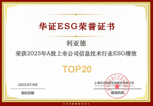 入選華證指數(shù)“2025年A股上市公司信息技術(shù)行業(yè)ESG績效TOP20”