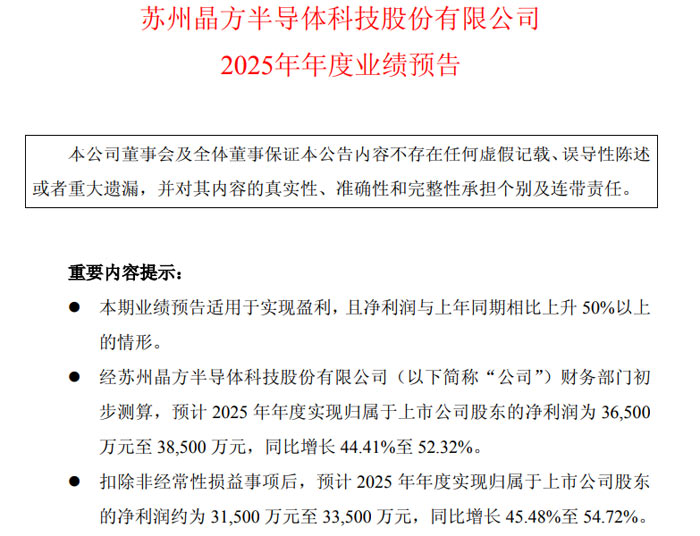 蘇州晶方半導(dǎo)體科技股份有限公司預(yù)計(jì)全年業(yè)績(jī)實(shí)現(xiàn)顯著增長(zhǎng),歸屬于上市公司股東的凈利潤(rùn)及扣非后凈利潤(rùn)均同比大幅提升。