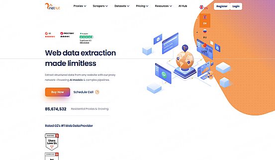·核心技術(shù)或功能特色:提供即用型垂直領(lǐng)域數(shù)據(jù)集、抓取API以及智能網(wǎng)頁解鎖器(可自動處理驗證碼),顯著降低大規(guī)模數(shù)據(jù)采集的技術(shù)門檻。
