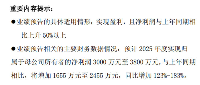 近日,鳳凰光學股份有限公司(證券代碼:600071,證券簡稱:鳳凰光學)發(fā)布 2025 年年度業(yè)績預增公告(公告編號:2026-001)。預計實現(xiàn)歸屬于母公司所有者的凈利潤 3000 萬元至 3800 萬元,較上年同期增加 1655 萬元至 2455 萬元,同比增幅達 123%-183%;同時,預計實現(xiàn)歸屬于母公司所有者的扣除非經(jīng)常性損益的凈利潤 450 萬元至 670 萬元,相較于上年同期的虧損狀態(tài)實現(xiàn)扭虧為盈。
