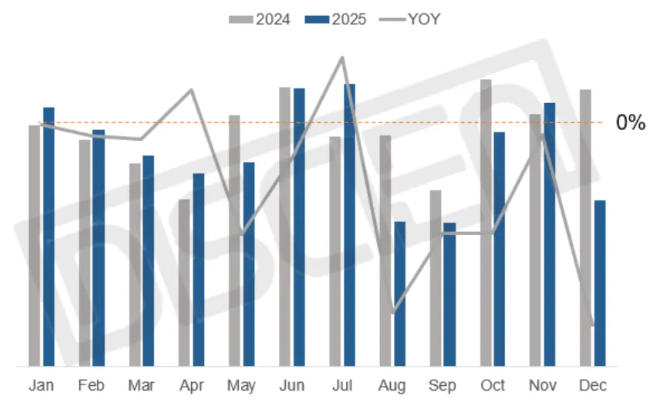 2025年中央財政預(yù)撥810億元用于消費品以舊換新,投影儀被列入補貼品類,尤其中高端產(chǎn)品補貼后降價明顯,受國補政策紅利傾斜較大,有效拉動品質(zhì)消費。然而,盡管全年均有政策支持,但受補貼效應(yīng)遞減及消費需求前置影響,投影市場仍延續(xù)了去年的下滑趨勢,尤其在下半年銷量回落明顯。第四季度因去年同期基數(shù)較高,同比降幅尤為突出。