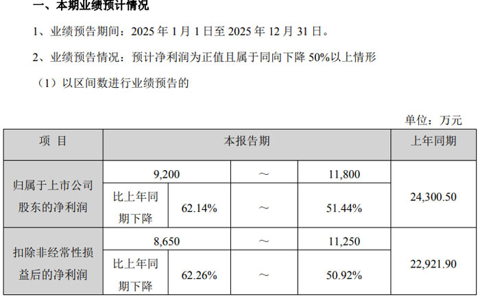 近日,深圳市聯(lián)得自動化裝備股份有限公司(證券代碼:300545,證券簡稱:聯(lián)得裝備)發(fā)布 2025 年度業(yè)績預(yù)告,披露公司 2025 年經(jīng)營業(yè)績情況。公告顯示,公司 2025 年凈利潤同比大幅下降,核心經(jīng)營數(shù)據(jù)較上年同期出現(xiàn)明顯調(diào)整。