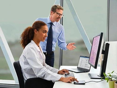 在成果方面,該合作已顯著提升診斷準(zhǔn)確性。高清晰度、精準(zhǔn)色彩與穩(wěn)定對(duì)比度確保了復(fù)雜腫瘤病理細(xì)節(jié)的清晰呈現(xiàn),使醫(yī)生能夠做出更可靠的判斷。同時(shí),顯示系統(tǒng)的人性化設(shè)計(jì)也有益于醫(yī)生健康,減輕長(zhǎng)期閱片帶來(lái)的眼部壓力,提升工作效率與工作滿意度。納瓦拉大學(xué)醫(yī)院解剖病理學(xué)家JoséEcheveste博士表示:“巴可MDPC-8127擁有出色的圖像清晰度和色彩精準(zhǔn)度,這對(duì)于病理診斷工作至關(guān)重要。我原本以為27英寸的屏幕尺寸會(huì)顯得有點(diǎn)小,但令我驚訝的是,8MP高分辨率讓它在病理閱片時(shí)觀看起來(lái)非常舒適,而且可以輕松放在辦公桌上,不會(huì)占用太多空間!