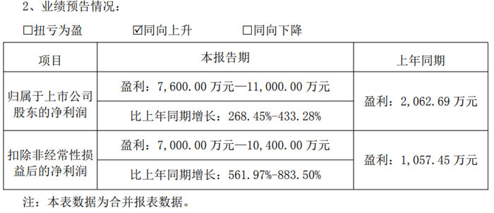 南極光歸母凈利潤預(yù)計(jì)為 7600.00 萬元至 11000.00 萬元,上年同期該數(shù)據(jù)為 2062.69 萬元,同比增長 268.45%-433.28%;扣非凈利潤預(yù)計(jì)為 7000.00 萬元至 10400.00 萬元,較上年同期的 1057.45 萬元同比增長 561.97%-883.50%。