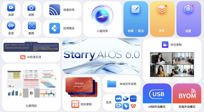 全兼容無門檻:搭載Starry AIOS 6.0系統(tǒng),系統(tǒng)級(jí)支持所有主流會(huì)議軟件,用戶無需改變使用習(xí)慣,即可在不同平臺(tái)間無縫切換;具備獨(dú)立運(yùn)行能力,不依賴?yán)吓f顯示設(shè)備的處理能力,從底層保障了會(huì)議系統(tǒng)的穩(wěn)定性,徹底打消了用戶對(duì)“利舊影響體驗(yàn)”的顧慮。