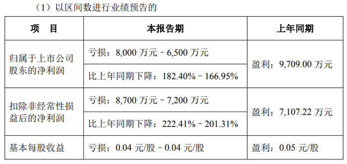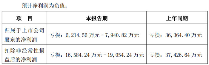 數(shù)據(jù)顯示,公司歸屬于上市公司股東的凈利潤預計虧損 5500 萬元 - 9000 萬元,上年同期該指標虧損 21480.83 萬元;歸屬于上市公司股東的扣除非經(jīng)常性損益后的凈利潤預計虧損 7700 萬元 - 12000 萬元,上年同期虧損 23669.41 萬元。