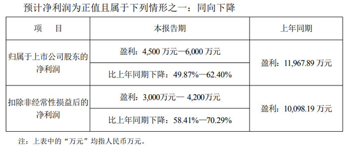 業(yè)績預告期間為 2025 年 1 月 1 日至 2025 年 12 月 31 日。數(shù)據(jù)顯示,公司歸屬于上市公司股東的凈利潤預計盈利 4500 萬元 - 6000 萬元,較上年同期的 11967.89 萬元下降 49.87%-62.40%;扣除非經(jīng)常性損益后的凈利潤預計盈利 3000 萬元 - 4200 萬元,較上年同期的 10098.19 萬元下降 58.41%-70.29%。