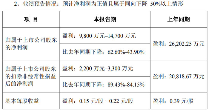 公司歸屬于上市公司股東的凈利潤預計虧損 19000 萬元至 16000 萬元,上年同期虧損 19225.64 萬元;扣除非經(jīng)常性損益后的凈利潤預計虧損22750  萬元至 19750 萬元,上年同期虧損 21208.81 萬元。報告期內(nèi),公司預計非經(jīng)常性損益約 3750 萬元。
