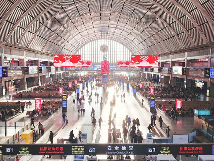 全國鐵路首例!洲明雙面屏亮相沈陽站,溫情護航2026春運
