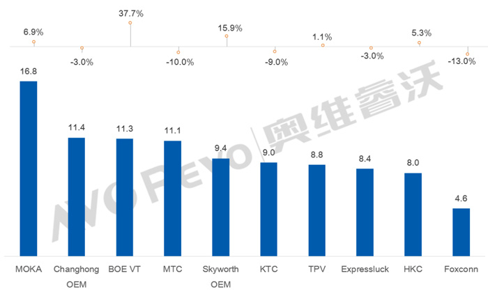 2025年全球TOP10電視代工廠出貨規(guī)模與同比