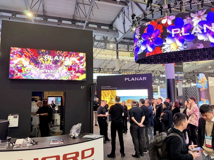 全新Planar®DirectLight® Essential 系列成為展臺焦點,其打造的巨型LED顯示屏對角線長度達27英尺(超8米),憑借0.9毫米像素間距與8K超高清分辨率,可呈現(xiàn)極致逼真的全彩畫面,還原真實視界。產(chǎn)品采用COB技術(shù)打造,兼具高像素密度、高能效與強耐用性,獨特LED分選工藝及專有驅(qū)動IC,有效改善亮度與色彩一致性問題,并支持前維護設(shè)計。