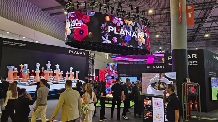 全新Planar®DirectLight® Essential 系列成為展臺焦點,其打造的巨型LED顯示屏對角線長度達27英尺(超8米),憑借0.9毫米像素間距與8K超高清分辨率,可呈現(xiàn)極致逼真的全彩畫面,還原真實視界。產(chǎn)品采用COB技術(shù)打造,兼具高像素密度、高能效與強耐用性,獨特LED分選工藝及專有驅(qū)動IC,有效改善亮度與色彩一致性問題,并支持前維護設計。