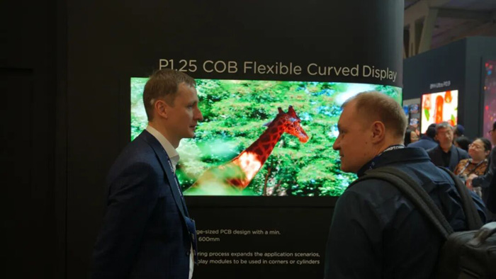 透明LED演示方案同樣驚艷全場。該方案結(jié)合高透明度與柔性設計,整體結(jié)構(gòu)超薄、輕量化,厚度僅3毫米。透明網(wǎng)格dvLED技術(shù)在保持通透外觀一致性的同時,依然呈現(xiàn)鮮艷畫面與寬廣視角,為建筑、零售及沉浸式體驗應用開辟了全新可能。