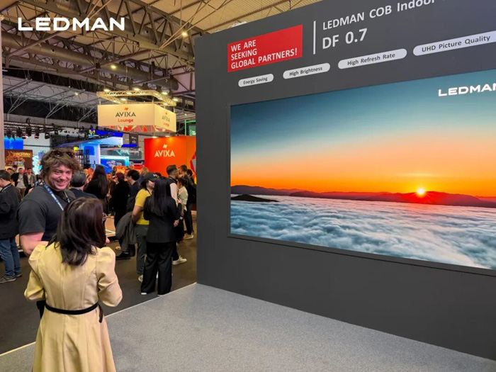 雷曼DF0.7超高清4K顯示屏搭載廣電級性能,支持7680Hz刷新率與120Hz換幀率,小箱體可自由拼接,適配3D影院、指揮中心等多元場景。