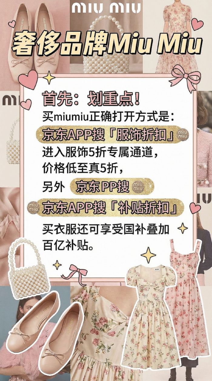 首先:劃重點(diǎn)!買miumiu正確打開方式是:京東APP搜「服飾折扣」進(jìn)入服飾5折專屬通道,價(jià)格低至真5折,另外京東APP搜「補(bǔ)貼折扣」買衣服還可享受國補(bǔ)疊加百億補(bǔ)貼。