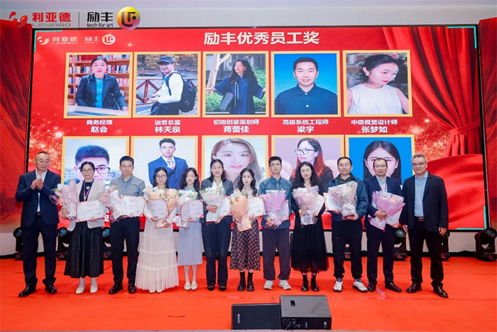 利亞德集團(tuán)各年度獎(jiǎng)項(xiàng)及利亞德勵(lì)豐文化各年度獎(jiǎng)項(xiàng)依次揭曉,每一個(gè)響亮的名字背后,都是不同崗位上的堅(jiān)守與擔(dān)當(dāng)。隨后各業(yè)務(wù)板塊代表從李軍董事長和袁波總手中接過象征使命與責(zé)任的戰(zhàn)旗,昂揚(yáng)振奮的宣誓聲回蕩全場,這份鄭重宣誓既是對過往成績的致敬,更是對未來征程的共同承諾。