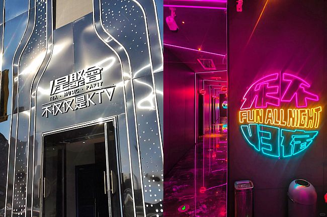 特別強調,星聚會的場景不是裝修,是內容。傳統(tǒng)KTV是千店一面,星聚會是千店千面。每家店都有獨立設計語言,霓虹、復古、賽博、庭院風輪番登場,不是為了好看,是為了“出片”。