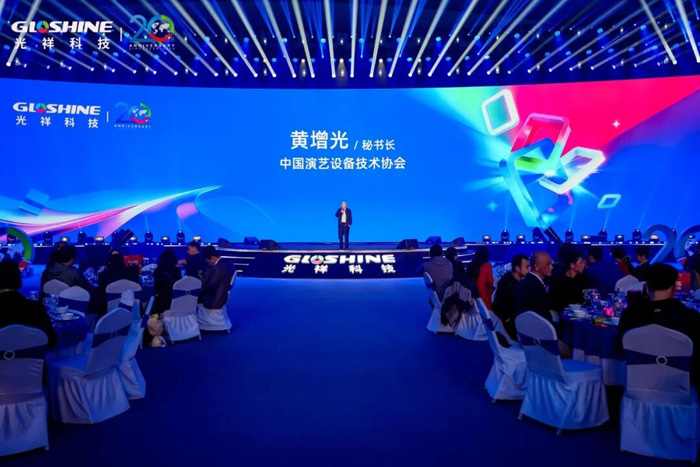 當(dāng)晚,以“因你,有光”為主題的光祥科技20周年慶典暨喬遷晚宴溫情啟幕,光影交織間,滿是感恩與歡聚的氛圍。中國演藝設(shè)備技術(shù)協(xié)會秘書長黃增光致辭,對光祥科技為行業(yè)發(fā)展作出的貢獻(xiàn)表示感謝,期待光祥以新總部為契機(jī),持續(xù)引領(lǐng)行業(yè)創(chuàng)新發(fā)展。