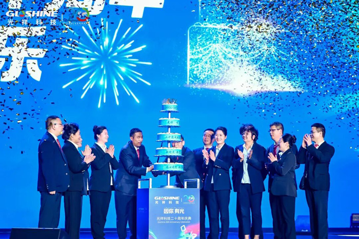 緊隨其后的慶生儀式上,光祥科技管理層共同切開二十周年慶典蛋糕,全體嘉賓舉杯同慶,祝愿光祥科技二十華誕快樂,喬遷大吉,未來前程似錦。