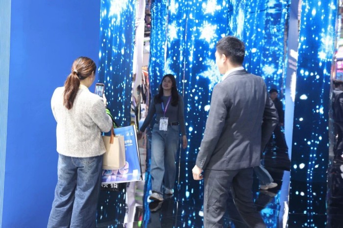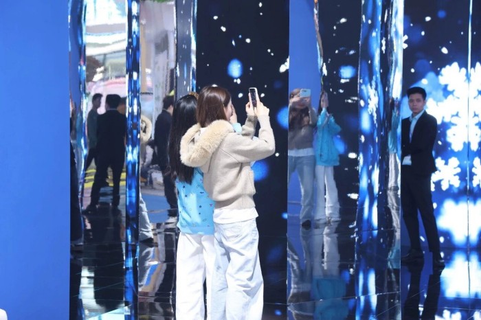 展臺打造“AI沉浸・冰雪秘境”特色體驗(yàn)區(qū),以光影交互構(gòu)筑流動(dòng)視覺盛宴,直觀展現(xiàn)顯示技術(shù)與藝術(shù)創(chuàng)意的融合,吸引眾多觀眾駐足打卡、互動(dòng)體驗(yàn)。
