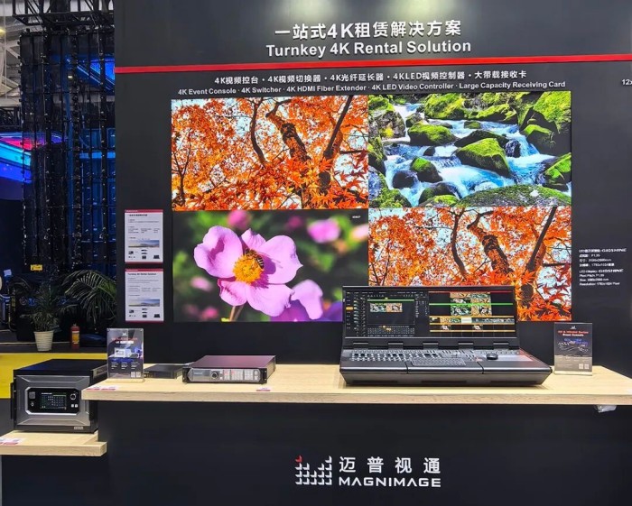 針對大型舞美演藝、電競、大型車展等活動場景,邁普視通推出一站式4K租賃解決方案,構(gòu)建全鏈路4K視頻設(shè)備體系。方案支持24路4K/60Hz輸入、16路4K/60Hz主輸出及4路4K/60Hz輔助輸出,配備48個4K圖層及多種圖層特效,多組自定義輸出分辨率等功能,可滿足租賃場景靈活需求。
