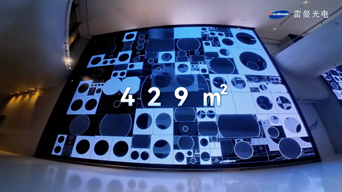 雷曼光電為南館公區(qū)提供了兩面超高清柔性大屏,總面積達(dá)429平方米,以22048*8216的超高總分辨率,完美貼合場館曲面建筑設(shè)計,細(xì)膩呈現(xiàn)藝術(shù)展品與創(chuàng)意視覺內(nèi)容,為觀眾打造沉浸式觀展體。