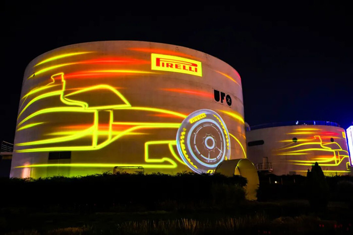 巨大的儲油罐變成展現(xiàn)競速賽場影像的弧面巨幕。6臺巴可UDX-4K40將賽車疾馳的刺激與觀眾興奮的身影投射在油罐建筑上,畫面色彩艷麗,細膩逼真,讓游人仿佛置身現(xiàn)場感受狂熱氣氛。