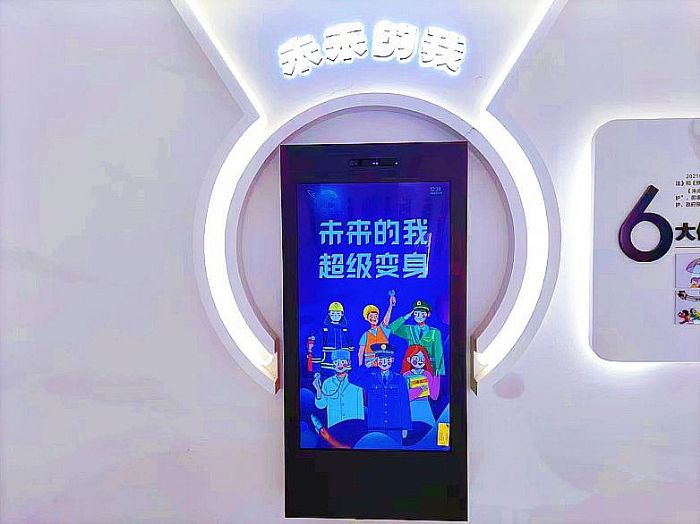 “未來的我-超級變身”是我們?yōu)樵擁椖慷ㄖ崎_發(fā)的明星互動裝置。采用65寸定制一體機配合KINECT體感交互設(shè)備和高性能圖形處理工作站,系統(tǒng)能夠精準識別人體手部動作,參與者只需簡單揮手,即可在屏幕上“變身”為法官、檢察官、警察等法律職業(yè)形象。