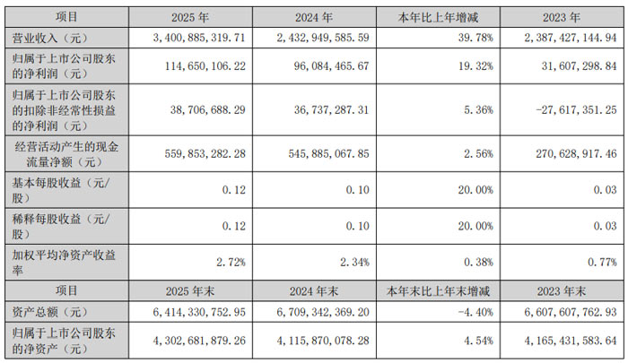 2026 年 3 月 28 日,廈門乾照光電股份有限公司(股票簡稱:乾照光電,股票代碼:300102)發(fā)布 2025 年年度報告。報告顯示,公司 2025 年實現(xiàn)穩(wěn)健經(jīng)營,核心財務(wù)指標(biāo)穩(wěn)步增長,在 LED 主業(yè)深耕與新業(yè)務(wù)拓展方面均取得顯著成效,全年實現(xiàn)營業(yè)收入 34.01 億元,同比增長 39.78%;歸屬于上市公司股東的凈利潤 1.15 億元,同比增長 19.32%;扣除非經(jīng)常性損益的歸屬于上市公司股東的凈利潤 3870.67 萬元,同比增長 5.36%;基本每股收益 0.12 元,同比增長 20.00%。