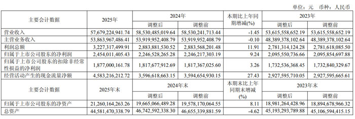3月30日晚間,海信視像科技股份有限公司(股票代碼:600060)發(fā)布2025年年度報(bào)告。報(bào)告顯示,公司全年實(shí)現(xiàn)營(yíng)業(yè)收入576.79億元,歸屬于上市公司股東的凈利潤(rùn)24.54億元,同比增長(zhǎng)9.24%;經(jīng)營(yíng)活動(dòng)產(chǎn)生的現(xiàn)金流量?jī)纛~45.83億元,同比增長(zhǎng)27.43%,整體經(jīng)營(yíng)業(yè)績(jī)穩(wěn)健增長(zhǎng),運(yùn)營(yíng)質(zhì)量持續(xù)提升。