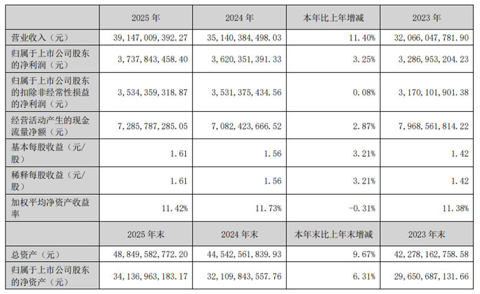 財(cái)務(wù)數(shù)據(jù)顯示,2025年公司實(shí)現(xiàn)營業(yè)收入391.47億元,同比增長11.40%;實(shí)現(xiàn)歸屬于上市公司股東凈利潤37.38億元,同比增長3.25%,在多重挑戰(zhàn)下保持了穩(wěn)健的盈利水平。報(bào)告期內(nèi),原材料價(jià)格持續(xù)上漲疊加匯率波動(dòng)加劇,對成本控制及利潤成長形成壓力;同時(shí),公司為搶抓AI服務(wù)器市場機(jī)遇,持續(xù)加大資本開支,短期內(nèi)折舊費(fèi)用的增加也對盈利成長帶來一定壓力。對此,公司積極維護(hù)供應(yīng)鏈穩(wěn)定,深入推進(jìn)降本增效,把握市場趨勢,積極開拓新客戶、新產(chǎn)品,有效化解了各類挑戰(zhàn)。