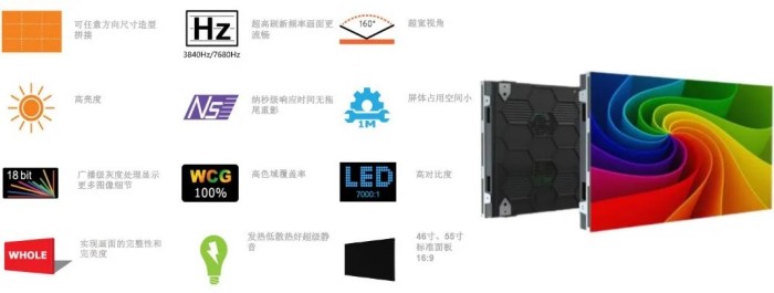 超高刷新頻率帶來絲滑觀感,3840Hz/7680Hz 高刷加持,動態(tài)畫面無卡頓、無拖影,無論是高速動態(tài)視頻還是實時數(shù)據(jù)展示,都能流暢呈現(xiàn);160° 超寬視角 搭配 100% 高色域覆蓋率,從任意角度觀看都能保持色彩精準(zhǔn)、亮度均勻,大視角下不偏色,多人觀看場景也能兼顧每一個視角的體驗。