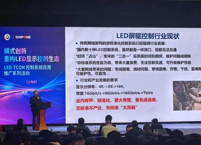針對(duì)當(dāng)前LED 屏驅(qū)控制行業(yè)面臨的非標(biāo)準(zhǔn)化痛點(diǎn),演講進(jìn)行了深度復(fù)盤: