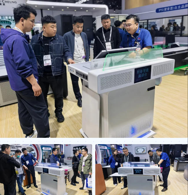 展會現(xiàn)場,照彰智能演講臺吸引了眾多參展嘉賓的駐足了解。這款智能演講臺,不僅為用戶提供了智能便捷的演講環(huán)境,更能有效節(jié)省演講前的準(zhǔn)備時間和演講者的精力,也無需攜帶大量紙質(zhì)資料,無需準(zhǔn)備繁瑣的演講道具,在更大程度上優(yōu)化演講體驗。