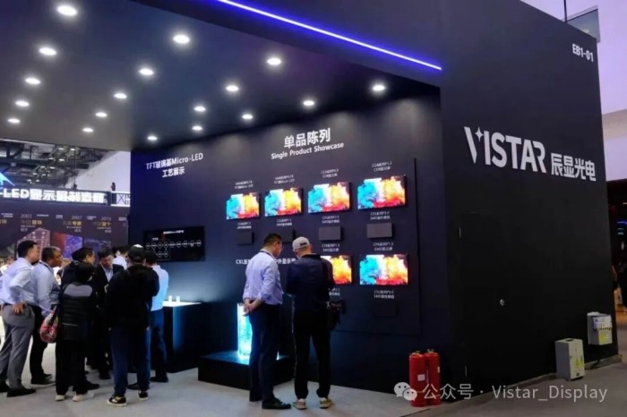為了讓業(yè)界更深入了解TFT基Micro-LED技術(shù)的核心優(yōu)勢,辰顯光電在展會現(xiàn)場設(shè)置了芯片展示和工藝展示區(qū),通過實物展示、動畫演示等多種形式,揭開了TFT基Micro-LED背后的技術(shù)奧秘。