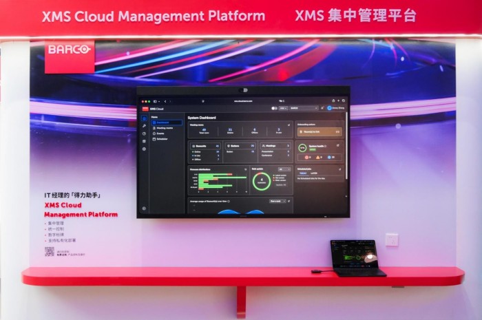 現(xiàn)場(chǎng),巴可還通過65英寸可立享無線會(huì)議屏,演示了XMS Cloud管理平臺(tái)如何通過數(shù)據(jù)化看板,實(shí)現(xiàn)設(shè)備的遠(yuǎn)程監(jiān)控與智能運(yùn)維,助力企業(yè)IT團(tuán)隊(duì)提升設(shè)備利用率,優(yōu)化管理成本。這款一目了然的云端智能管理方案,引來很多觀眾駐足了解。