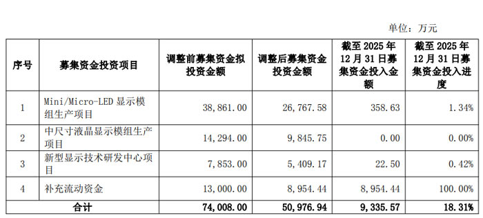 截至 2025 年 12 月 31 日,募集資金累計投入 0.93 億元,整體投入進度 18.31%,具體項目投入情況如下: