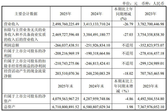 2025 年,面對(duì)全球顯示行業(yè)產(chǎn)能釋放、中小尺寸領(lǐng)域競(jìng)爭(zhēng)日趨激烈的市場(chǎng)環(huán)境,龍騰光電經(jīng)營業(yè)績(jī)承壓。報(bào)告期內(nèi),公司實(shí)現(xiàn)營業(yè)收入 24.99 億元,同比下降 26.79%;歸屬于上市公司股東的凈利潤(rùn) **-2.08 億元 **;歸屬于上市公司股東的扣除非經(jīng)常性損益的凈利潤(rùn) **-2.11 億元 **,較上年同期虧損收窄 14.61%。