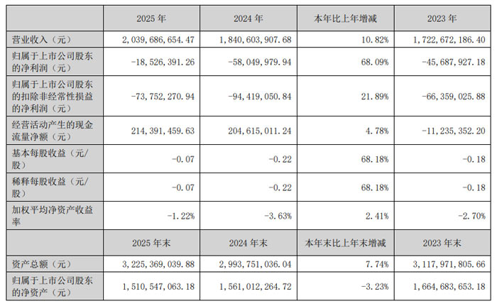蘇州蘇大維格科技集團(tuán)股份有限公司(股票代碼:300331,以下簡稱 “蘇大維格”)近日發(fā)布 2025 年年度報告。報告期內(nèi),公司聚焦微納光學(xué)主業(yè),經(jīng)營質(zhì)量持續(xù)改善,實現(xiàn)營業(yè)收入20.40 億元,同比增長10.82%;歸屬于上市公司股東的凈利潤 **-1852.64 萬元 **,同比大幅減虧68.09%,經(jīng)營活動產(chǎn)生的現(xiàn)金流量凈額達(dá)2.14 億元,同比增長4.78%,整體呈現(xiàn) “營收增、虧損收、現(xiàn)金流穩(wěn)” 的良好態(tài)勢。