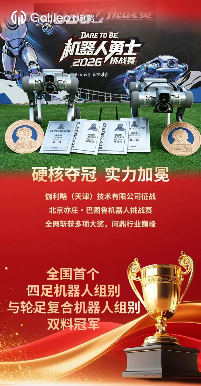 近日,2026機(jī)器人勇士挑戰(zhàn)賽在北京亦莊燃情收官。作為伽利略(天津)技術(shù)有限公司(以下簡(jiǎn)稱“伽利略”)的戰(zhàn)略合作伙伴,利亞德憑借領(lǐng)先的技術(shù)實(shí)力,助力其自研四足機(jī)器人——鐵甲天狼隊(duì)、輪足復(fù)合機(jī)器人——鐵甲天龍隊(duì)強(qiáng)勢(shì)出征,包攬雙項(xiàng)組別全國(guó)冠軍,同時(shí)斬獲極速獎(jiǎng)、通關(guān)獎(jiǎng)雙重大獎(jiǎng),成為本屆賽事中唯一實(shí)現(xiàn)“雙冠+雙獎(jiǎng)”大滿貫的參賽企業(yè)。利亞德向伽利略致以最熱烈的祝賀!