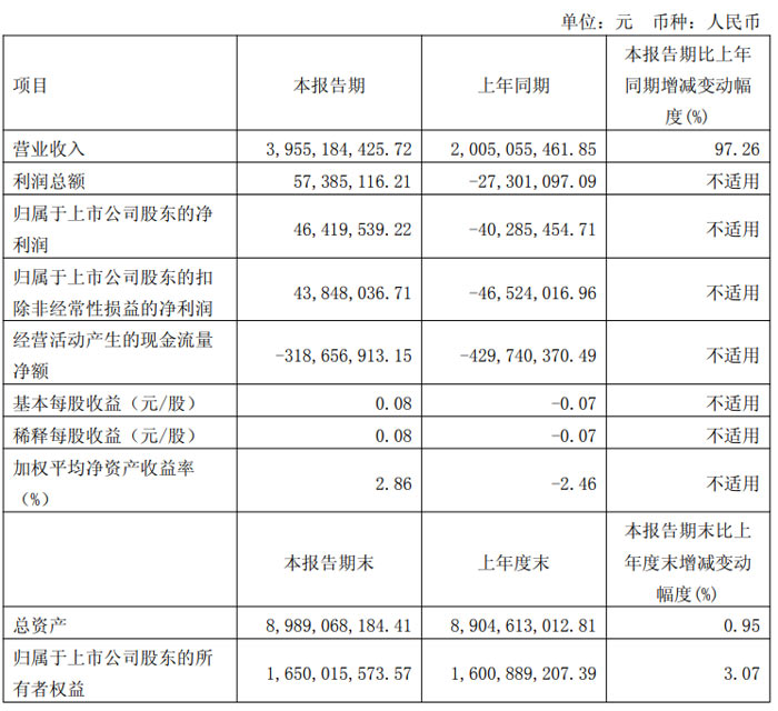 基本每股收益為 0.08 元 / 股,上年同期為 - 0.07 元 / 股;加權(quán)平均凈資產(chǎn)收益率為 2.86%,較上年同期的 - 2.46% 增加 5.32 個(gè)百分點(diǎn),股東回報(bào)能力明顯增強(qiáng)。